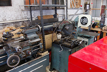 各種加工、パーツ製作、修理に活用している工作機械。できるだけ社内で作業しローコスト&ハイクオリティを目指します。